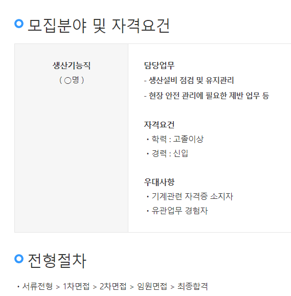 채용 공고: 기능직(생산) 주요 업무