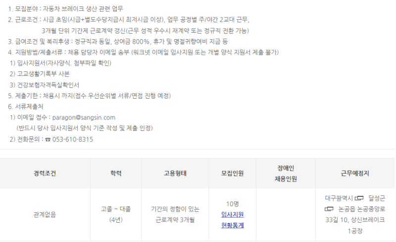 - 주제 일관성: 하나의 회사(상신브레이크) + 하나의 직무(생산직)에 집중하여 정보의 신뢰도를 높입니다.