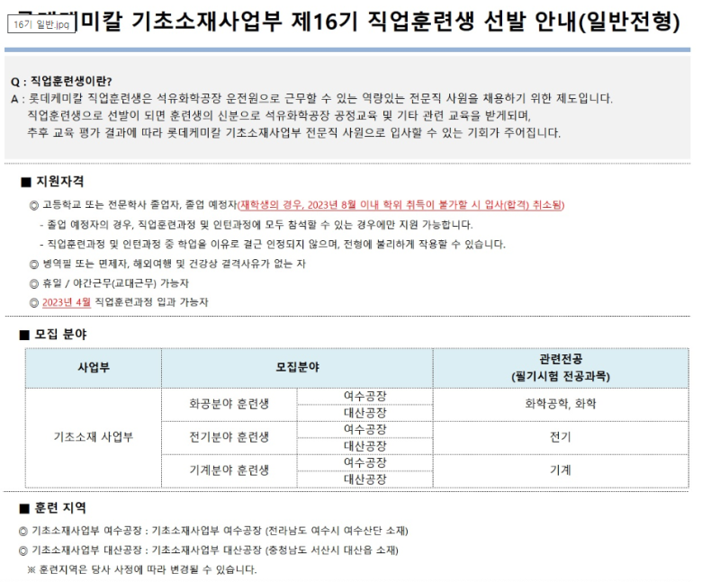 롯데케미칼 직업훈련생 합격 비법 공개! 자소서 & 연봉 정보 완벽 분석 (여수/대산)