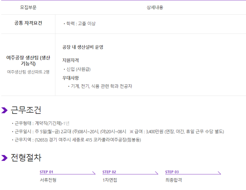 코카콜라음료 생산직(생산) 직무 상세 분석