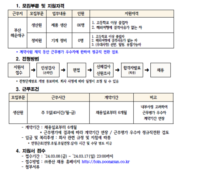 ✅ 풍산 전문직(생산/계약직) 주요 직무
