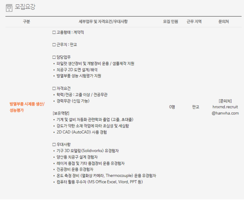 채용 공고 분석 (시제품 생산/성능평가 담당)