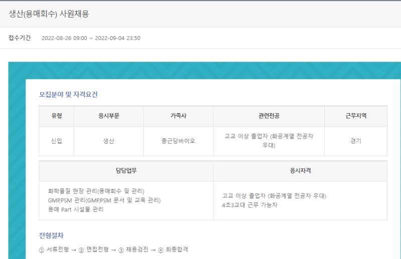 안산 종근당바이오 생산직 합격 자소서 비법 공개 (연봉 정보)