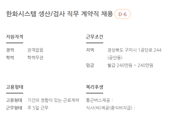 구미 한화시스템 생산직(계약직) 자소서 항목 분석 및 합격 가이드
