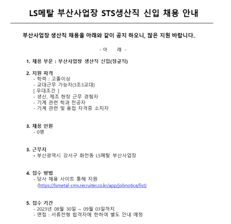 LS메탈 자소서 합격후기: 생산직 항목분석
