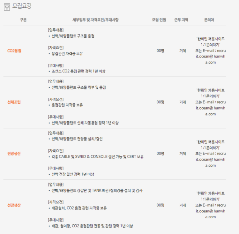 한화오션 자소서 합격후기, 생산직 채용공고 분석