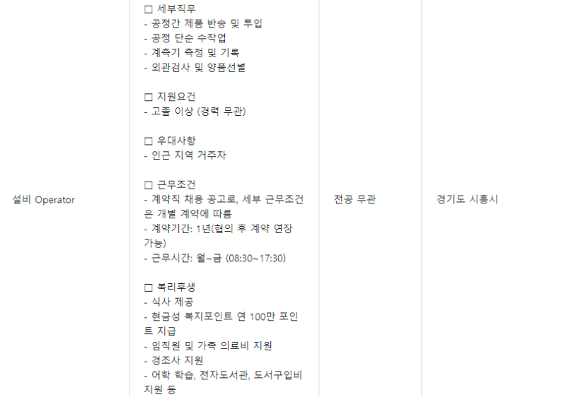 생산직(계약직) 주요 직무는 무엇일까요? 🤔