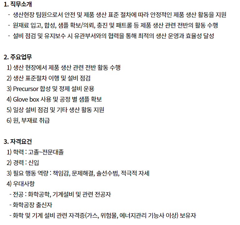 ✨ SK트리켐 생산직 주요 업무 (채용공고 기준)